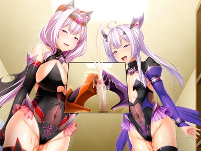 - 悪堕ちしたエクスティア・マギカとエクスティア・フローラが仰向けに寝転がる主人公の粗チンを踏みつけて射精させる