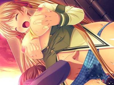 - 学校の屋上で制服から乳房と下半身を丸出しにされた星野あかりが立たされたまま主人公に手マンされ潮を吹く