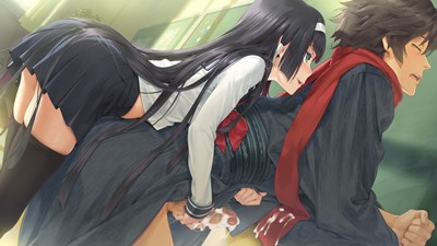 - ホラー雑誌「妖」の美人編集者でメガネを掛けた月丘香恋が露天風呂でよつばいになりバックから主人公に膣を犯され中出しされて絶頂する