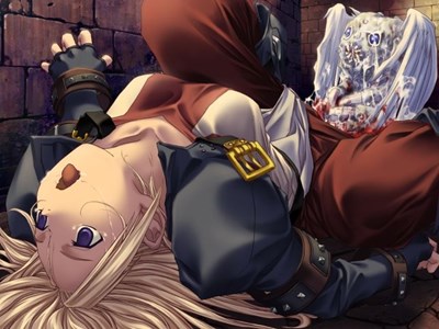 - 皇女を守護する近衛兵で金髪のベアトリーチェが両腕を吊り上げるようにして拘束され体に張り付いたスライムに全身をいじくり回される