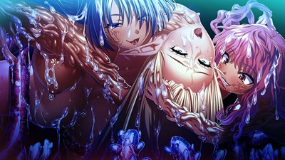 - 触手に大の字で拘束されたルーティアが悪堕ちしゾンビ化したヒルデガルド達に犯されアヘ顔でよがり狂う
