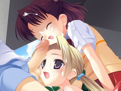 - 公園の茂みで主人公のチンコにしがみつく愛と彩が一緒にフェラチオし射精させる