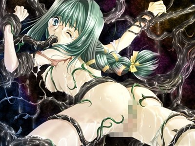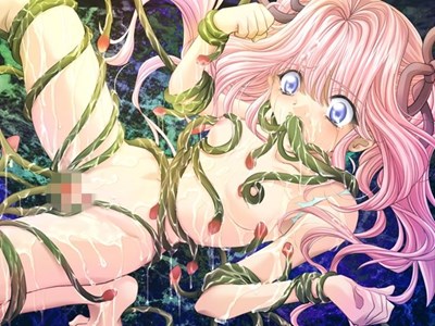- 主人公の妹でピンクの髪の須藤るりが体に絡みついた蔓に拘束され口と膣を大量の蔓にほじくり回され目をむいて泣き叫ぶ