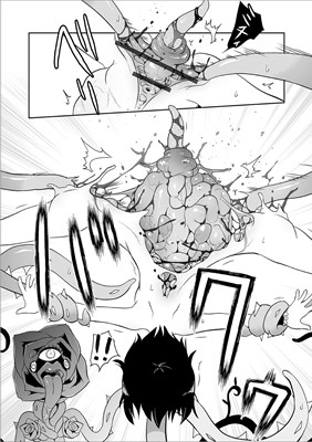 - 上記のエリカが口から挿入された触手をアナルまで貫通されて腹がパンパンに膨れ上がり内臓が飛び出て白目をむく
