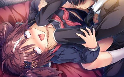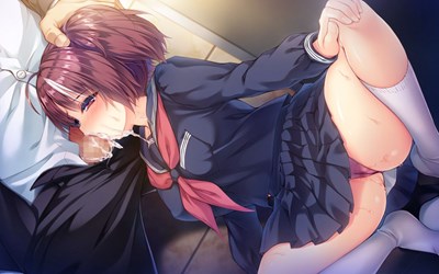 - 主人公の有能秘書として、行き過ぎた従順さで付き従う肉奴隷娘の折倉那奈穂がセーラー服を着たままガニ股で屈み主人公のチンコをイマラチオさせられる