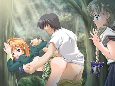 - 茂みの中で乳房と下半身を丸出しにし尻を突き出す滝田美鈴が主人公にバックから乳房をもみくちゃにされて犯され絶頂する