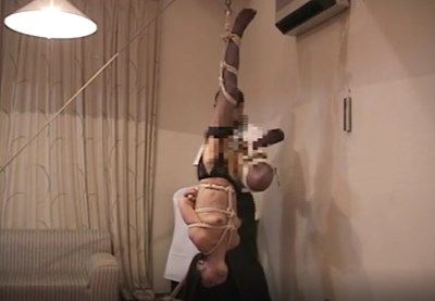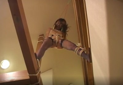 - 片足に全体重がかかるようにして逆さ吊りにされた高岡咲がバイブ責めされて悶える