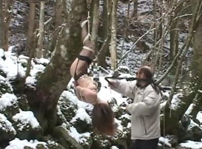 - 雪山で網タイツだけ履いた姿になり木に逆さ吊りにされた和泉さくらが志摩に股間をいじくり回され全身をムチで滅多打ちにされて泣き叫ぶ
