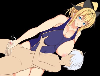 - 金髪ポニーテールのクリスが競泳水着姿でショタっ子を膝枕して乳首を吸わせながらチンコを手コキし射精させる