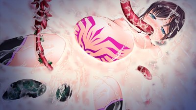 - 触手だらけの場所に囚われ大の字で拘束された橘瑛里華が口と膣とアナルを触手でほじくり回されボテ腹になるまで中出しされながら精液で満たされ沈められていく
