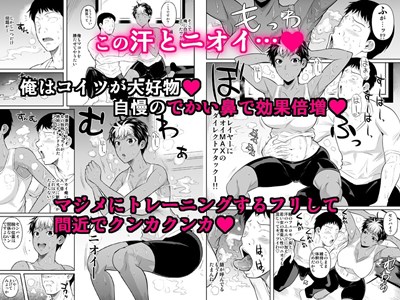 - 汗だくで陸上ウェアを着たまことが汗で蒸れたものすごい匂いのする脇を主人公に嗅がせる