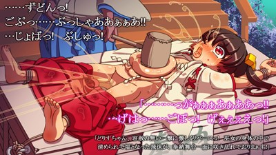 - ロリ巫女のせれんが長い棒で口と膣を串刺しされ嘔吐しながら潮を吹く