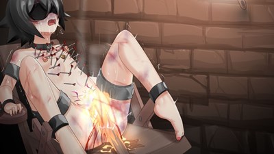 - 拷問椅子に座らされるクロが真っ赤に焼けた鉄板の上に足を乗せられ泣き叫ぶ