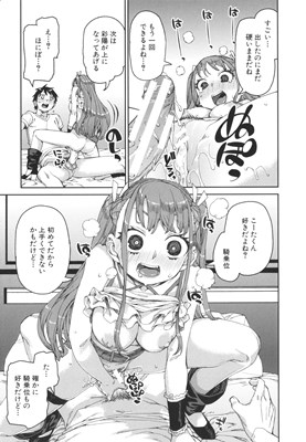 - 金髪で主人公の妹のしほが催眠にかけられて乳房を丸出しにし主人公のチンコをパイズリして射精させる