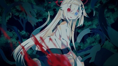 - 森の中で触手に襲われる銀髪ロングヘアーのロリっ子が両足を切断される