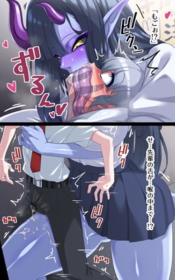 - 長い舌を喉の奥までねじ込んでディープスロートキスをする青肌先輩が白目を剥いてもがく主人公の乳首をいじくり回し連続射精させる
