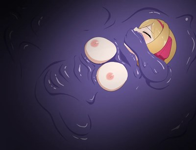 - スライムの化け物につかまったルミナステラが体を取り込まれる