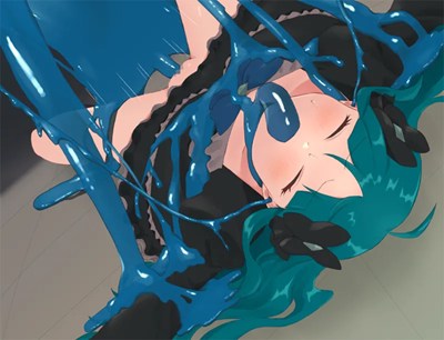 - スライム怪人に仰向けで押さえつけられた美住アズサが口と膣をスライムで犯される