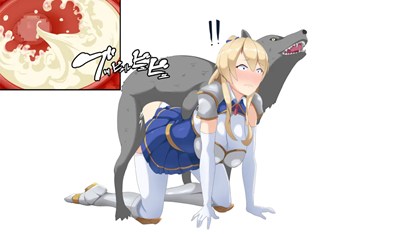 - よつばいになるフィーネが狼に犯され大量に中出しされて絶頂する