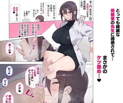 - 女保険医が競泳水着姿でひざまずき男子のアナルを舐めながら手コキする