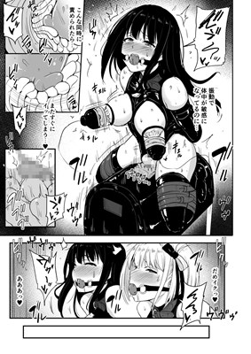 - 真っ黒なボンテージを着て拘束されボールギャクを嵌めた千束とたきなが股間をこするいぼいぼのついた乗馬マシーンにまたがらされ乳首にもブラシ付きの吸引機をつけられる