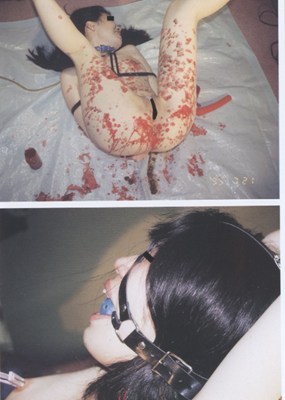 - 縛り上げられて浣腸された紅子が勢いよく浣腸液と糞を噴出する